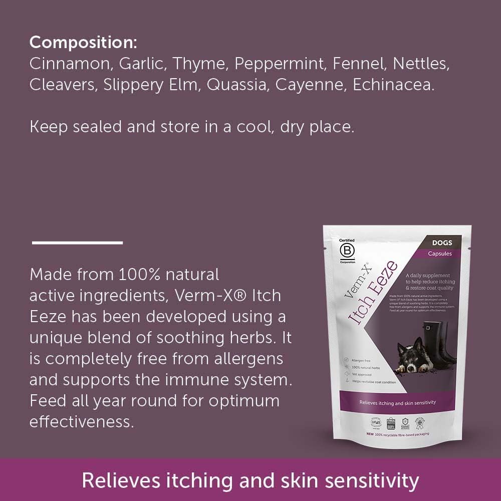 Verm-X Itch-Eeze for Dogs. All Natural Daily Supplement to Reduce Itching and Restore Coat Quality. Allergen free. Supports Immune System Clear 50gm