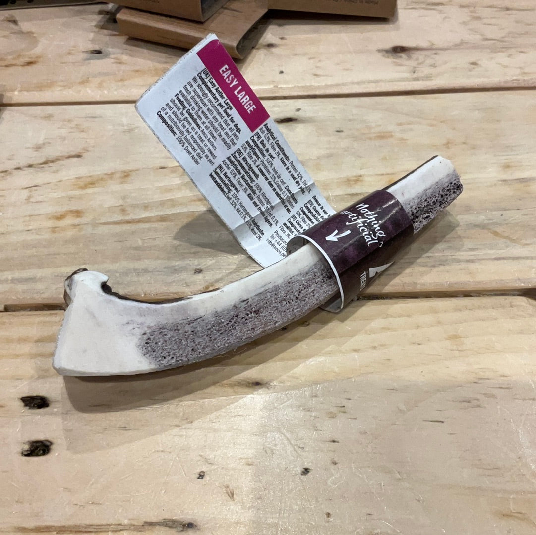 Anco Easy Antlers have all the amazing benefits as standard antlers, except easy antlers are halved down the middle. This gives instant access to the tasty marrow on the inside and also makes them suitable for puppies and less aggressive chewers! A true product of nature, Anco Antlers are naturally shed each winter and then picked up, cleaned, cut and sanded to ensure smooth non-sharp edges, and that's it! They are ideal for dogs that are keen chewers, helps re-direct destructive tendencies and anxiety into an acceptable outlet. They are highly nutritious, containing many beneficial nutrients and minerals including protein, calcium, magnesium, zinc and iron while also being fat free, they are suitable for dogs with pancreatitis or weight issues whilst still satisfying the dog's natural urge to chew. They are much less likely to splinter as the chewing grinds the antlers down slowly and they don't become slimy/sticky upon chewing and have virtually no odour so great for the house too!