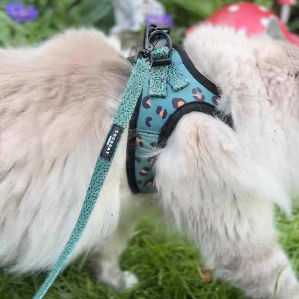 Take your kitty on an adventure with this chic cat harness in our Khaki Leopard print! With a comfortable fit and secure design, your meowing companion will love going on walks with you. Perfect for any feline adventure!