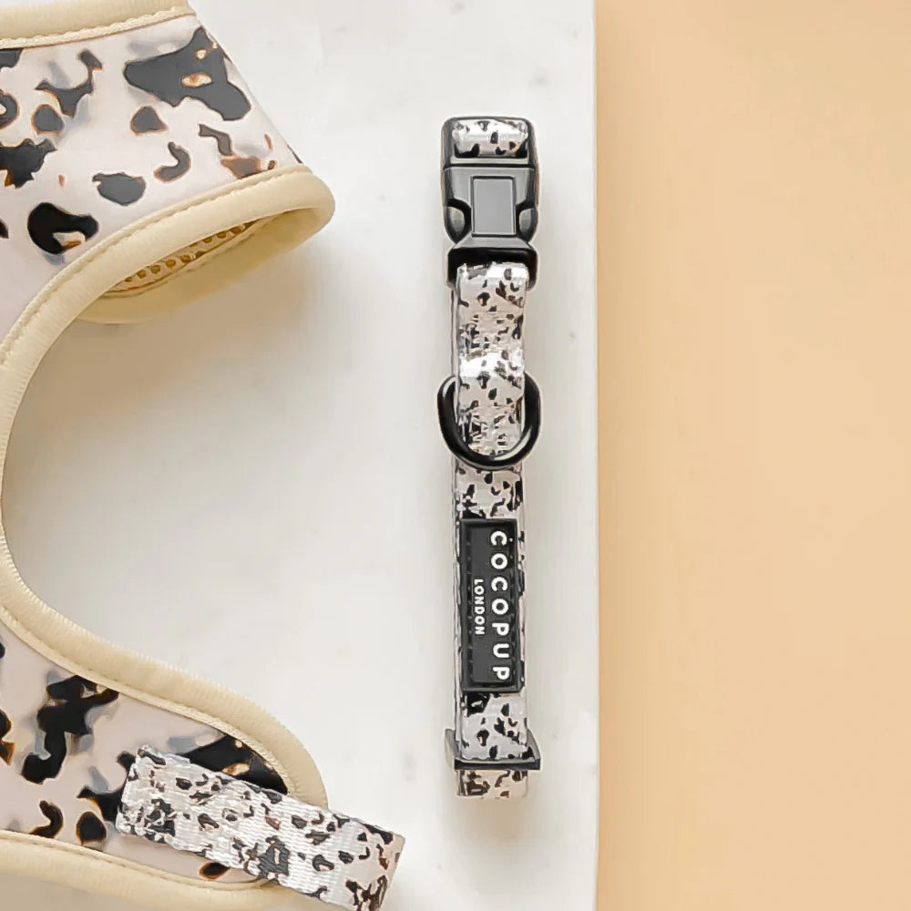 Stand out on your next dog walk with our Ivory Tort Collar! Featuring a unique tortoiseshell design in cream and black, this collar is sure to make a statement. Your pup will be the talk of the town (or park) with this stylish and playful accessory. Woof!
