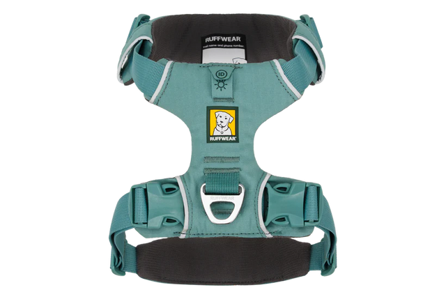 The Front Range Harness is a padded everyday dog harness that is easy to put on and comfortable for dogs to wear. A key piece of gear for canines embarking on a life of adventure with their humans, the harness features two leash attachment options: an aluminum V-ring centered on the dog's back for everyday walks, and reinforced front clip webbing at the dog's chest to redirect dogs that pull on leash. The ID pocket keeps dog tags quiet and easily accessible, and the reflective trim and light loop for The Beacon™ boost visibility in low-light conditions.