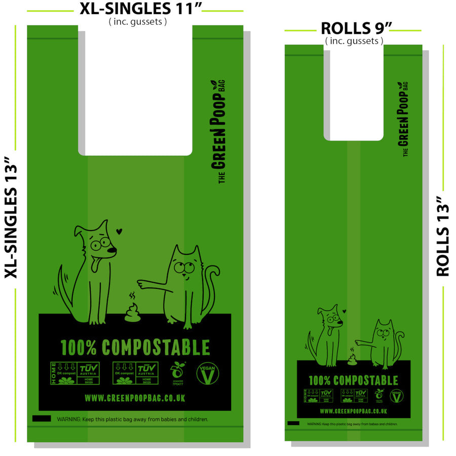 Plastic-free made with cornstarch blend, they are naturally biodegradable and certified to decompose within 3-6 months (even in home compost!) But it gets better as they will not create microplastics in landfill and the best bit - The GREEN POOP BAG leaves behind 80% less ash waste residue, when incinerated, than the leading brands ‘degradable’ or recycled plastic poo bags! Making them the best eco-friendly poo bag choice.