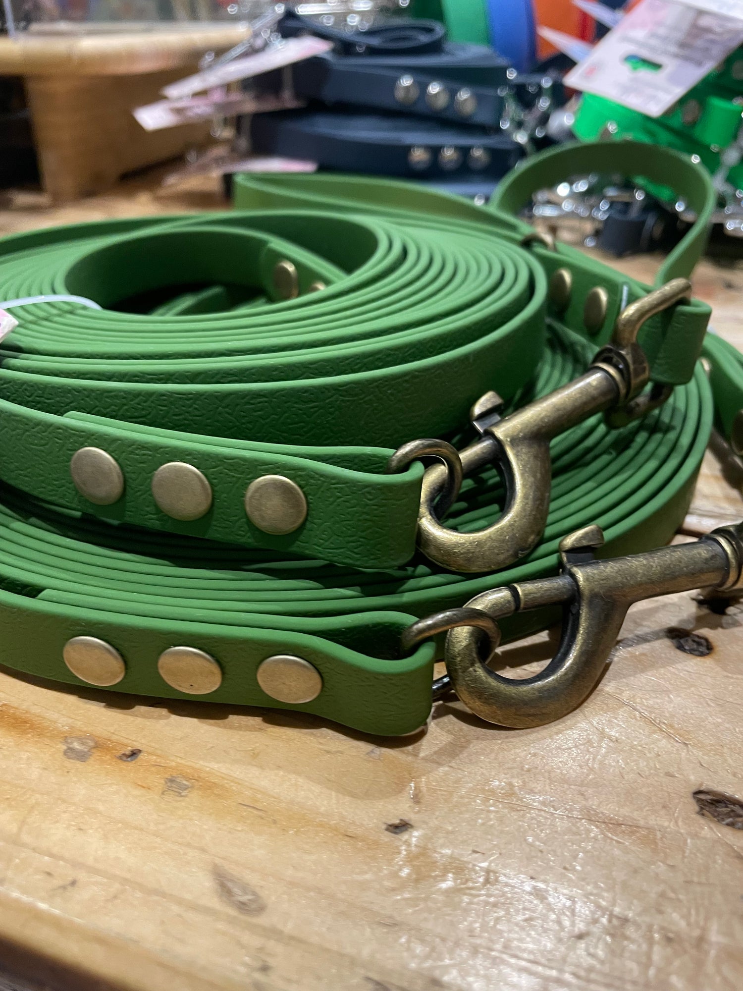 This product is made with Trigger Clasps as standard. Most of our hardware is colour coated zinc, which although durable is not fully resistant to abrasion and corrosion. If your dog plays in sea water, please ensure you choose Stainless Steel or Gold Brass for your hardware, to ensure you have a rust proof products, that is suitable for use by the sea side.