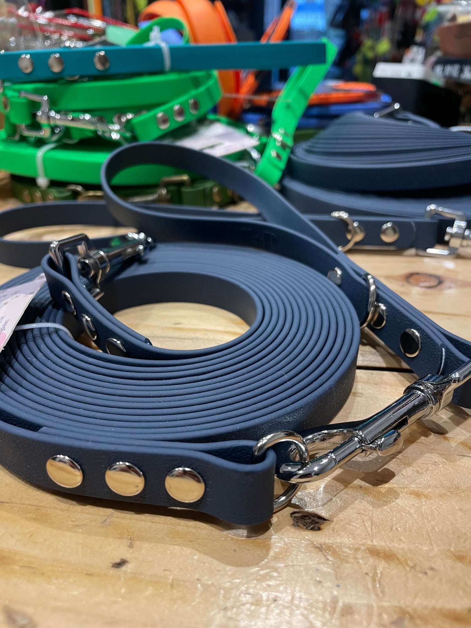 Our best selling waterproof Long Line Lead, comes with a detachable traffic handle. Take the handle off, and use the long line for trailing behind behind dogs, or add the comfortable handle for a more secure Long Line use.The PVC coated webbing material is a waterproof, won't absorb dirt or water and therefore doesn't become heavy when being in contact with the ground. The smooth material doesn't get stuck easily between brambles and bushes, and will make your walk much more enjoyable, with piece of a securely attached dog in mind. After your walk, simply wipe and clean the material and it's as good as new.