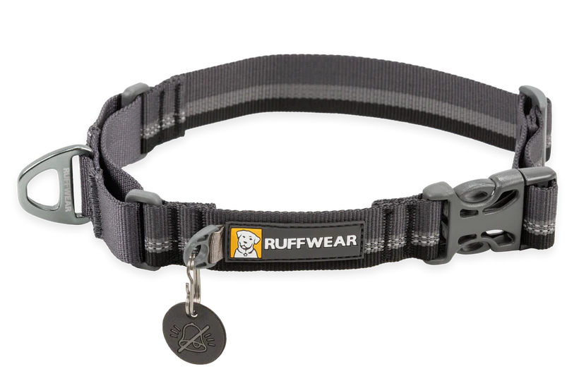 The Web Reaction Collar is a martingale collar with buckle for easy on/off and reflective Tubelok™ webbing. The limited-cinch martingale function is popular among dogs who have a knack for backing out of traditional collars. The Web Reaction is packed full of Ruffwear’s signature collar features: separate ID tag attachment point, a silicone tag silencer, and strong and comfortable webbing that holds its color.