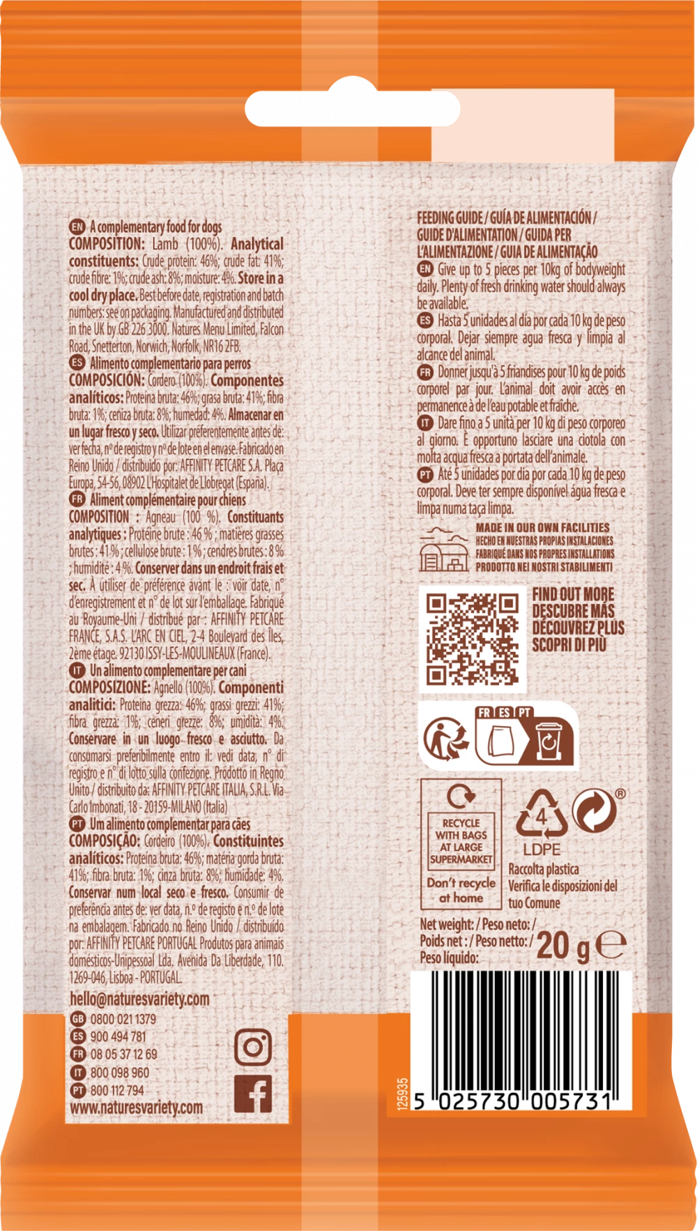 Natures Variety Freeze Dried Meat Bites Lamb 20g