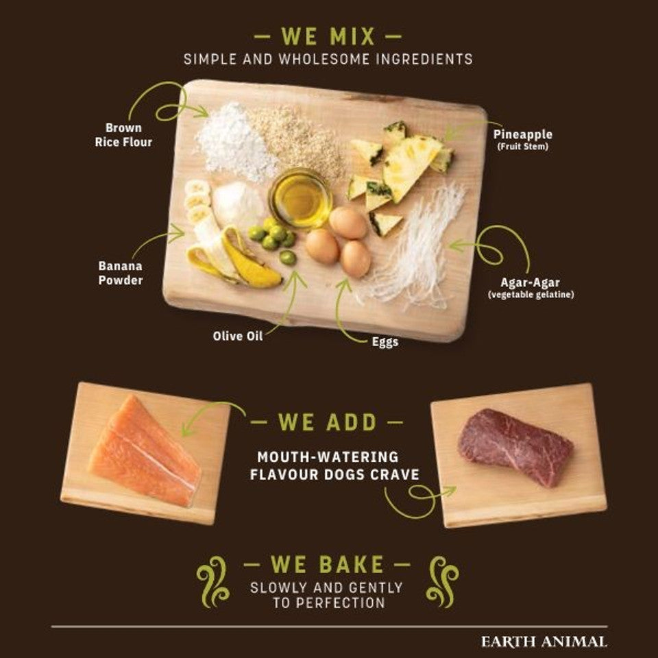 Made with just 6 simple ingredients plus 1 flavour-bursting protein, humanely-raised chicken, they are 100% free of chemicals, bleaches, and formaldehydes.