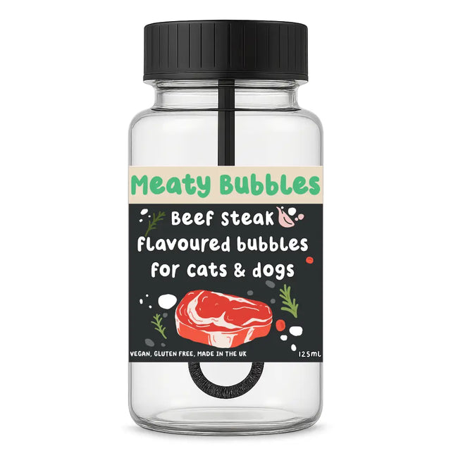 Our non-toxic bubbles for pets are infused with the rich and mouthwatering flavor of beef steak, making playtime even more enjoyable for your furry friend. The delicious scent and taste of beef will have your pet running, jumping, and playing like never before.