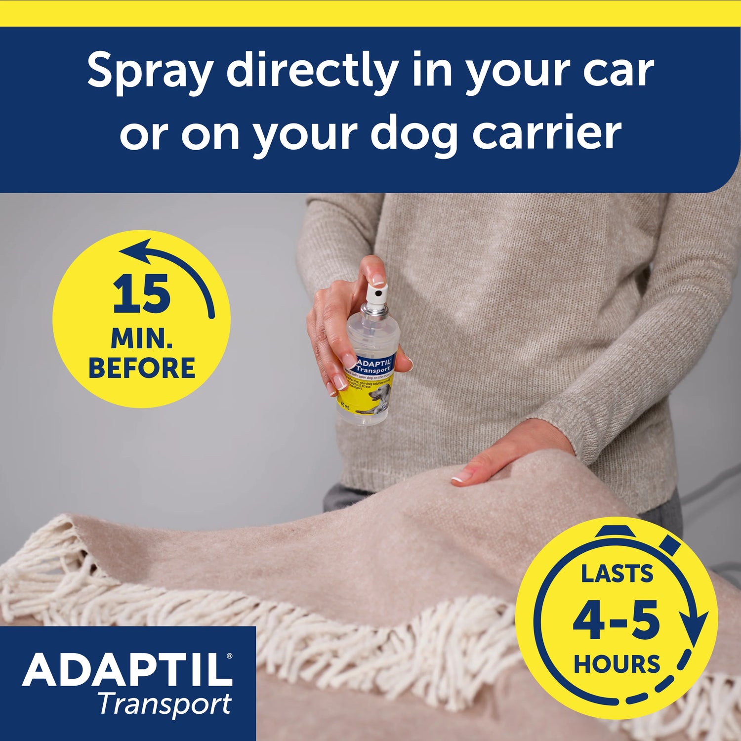 - Here is more information on how ADAPTIL Transport works and when to use a pet calming spray for dogs with anxiety