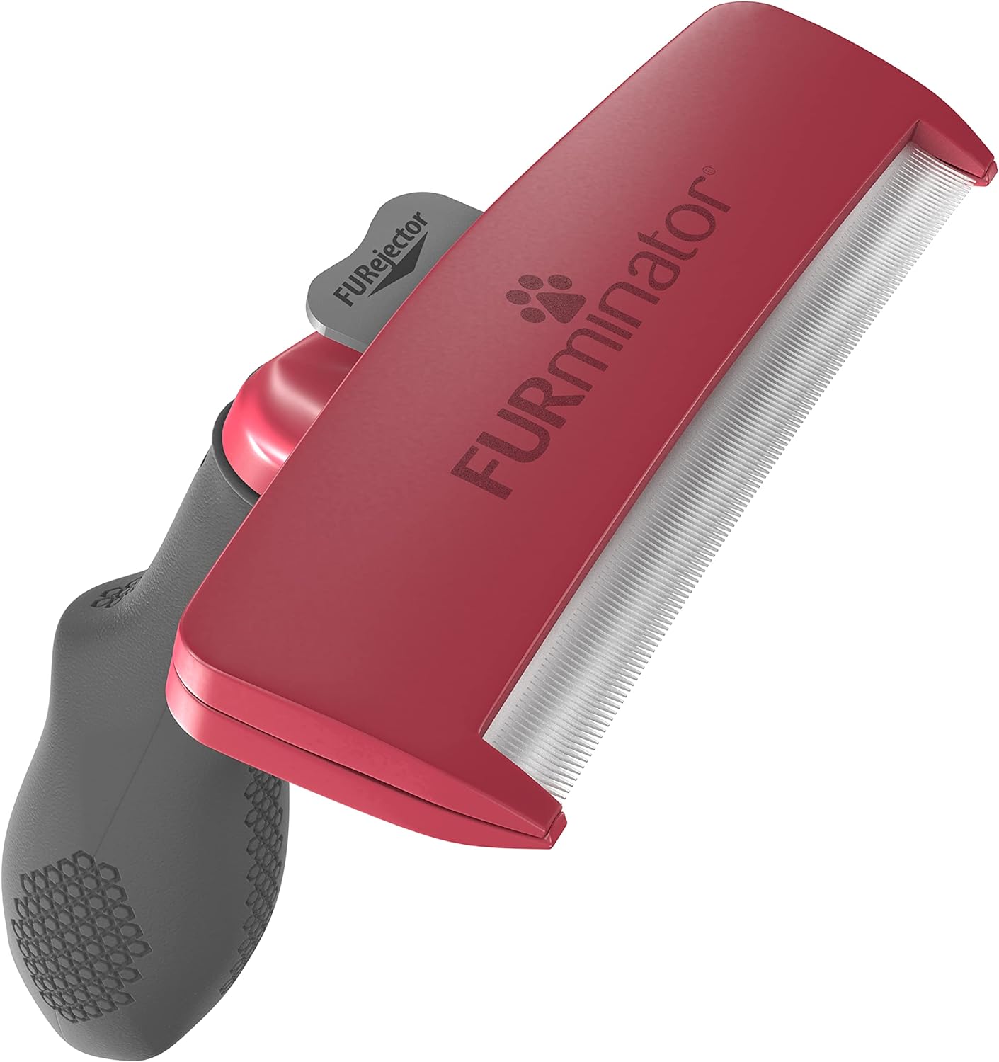 If you live with pets, you live with pet hair. FURminator® grooming solutions reduces loose hair from shedding up to 90% with regular use. The FURminator® Undercoat deShedding Tool for small dogs (dogs under 25 pounds) is specially designed to reach through the topcoat to safely and easily remove loose hair and undercoat without damaging the coat or cutting the skin.* The curved edge glides over your dog’s skin, preventing digging in at edges, and conforms to your pet’s natural build and shape for comfort. The ergonomic handle makes grooming easy, and the FURejector® button releases hair with ease.