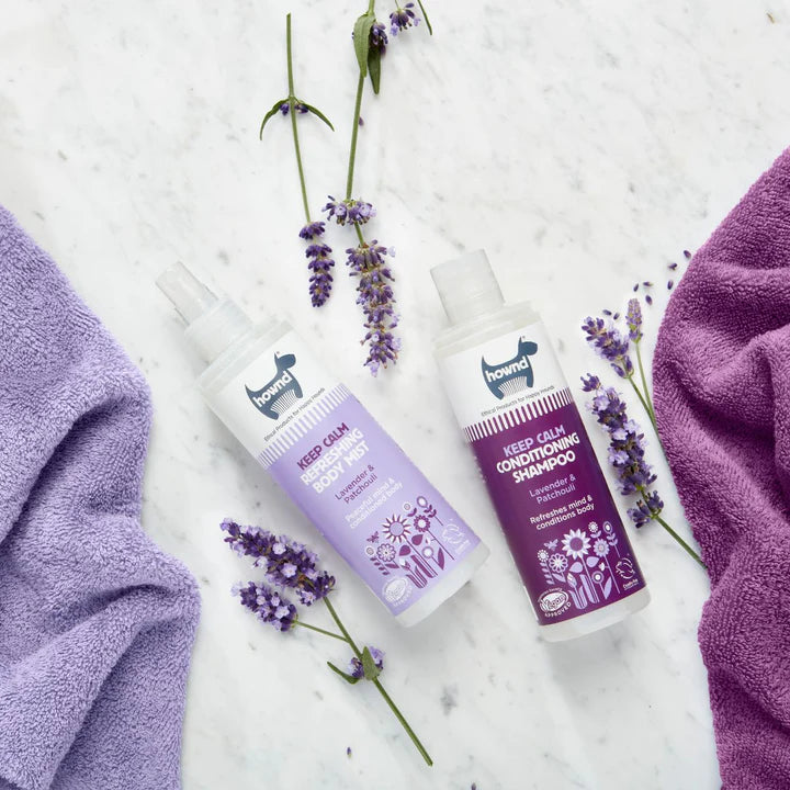Keep Calm Body Mist contains naturally calming lavender and patchouli, which can help nervous or tired dogs feel happier and more relaxed. Simply spray onto a dog’s dry fur after or between washes, before brushing or rubbing through the coat.