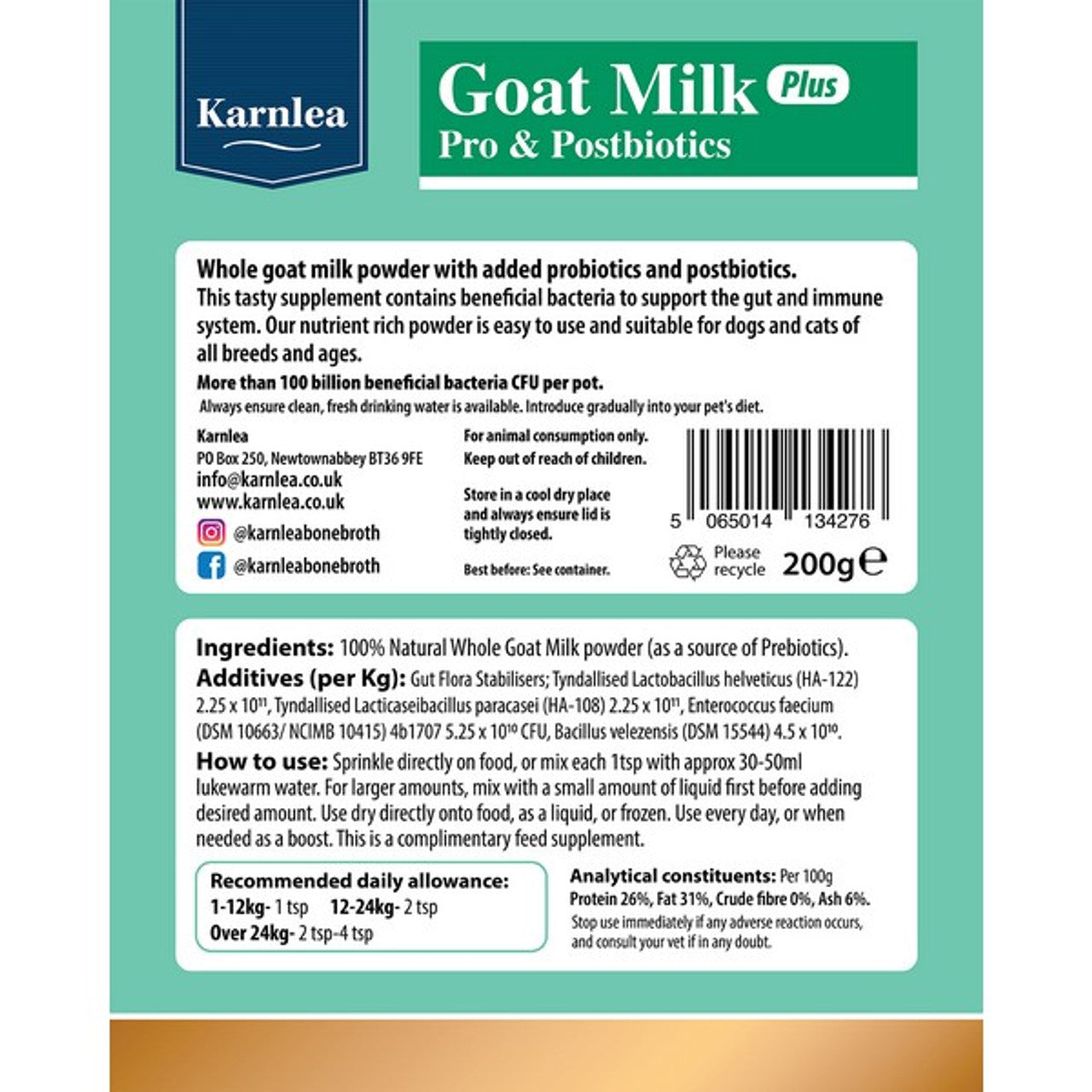 Karnlea Goat Milk Plus Powder Pro and Postbiotics for Dogs & Cats 200g