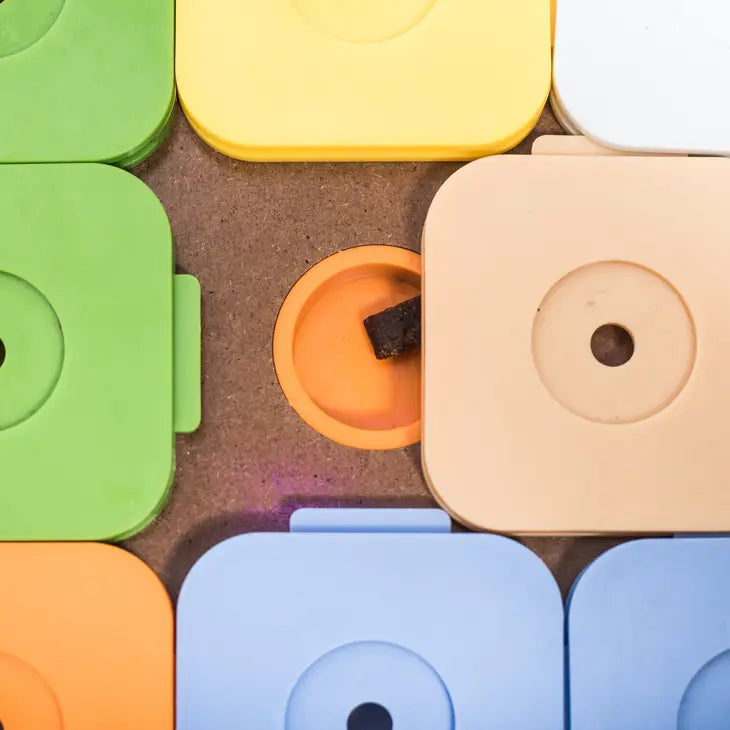 This version of our Dog' SUDOKU line of puzzles features movable tiles made of polypropylene, which has been certified as suitable for contact with edibles. It has been added to our family of intelligent games by request of those dog parents whose pets produce large amounts of saliva while playing games. 15 colorful tiles and 16 fields provide fire entertainment for middle and large-size breeds while stimulating their mental and physical abilities.