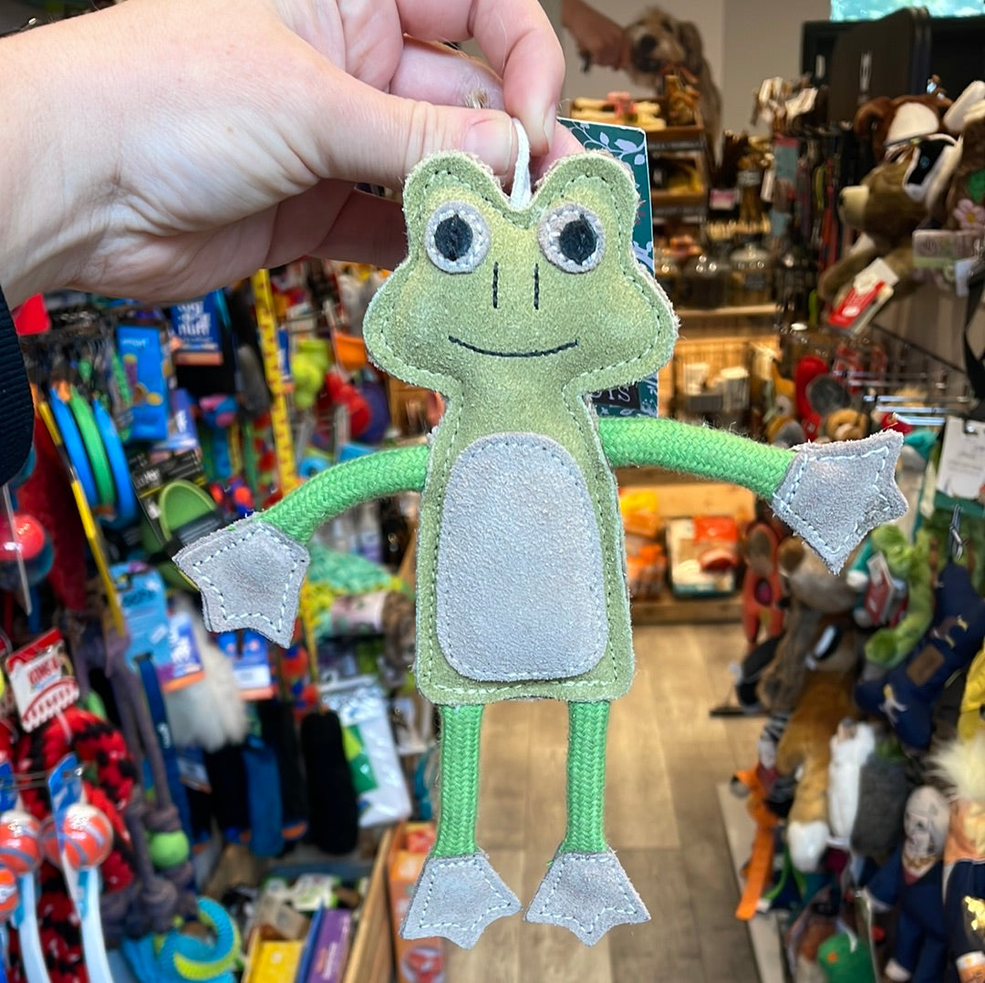 Francois le Frog is a fun toy made from sustainable jute and covered in soft suede.