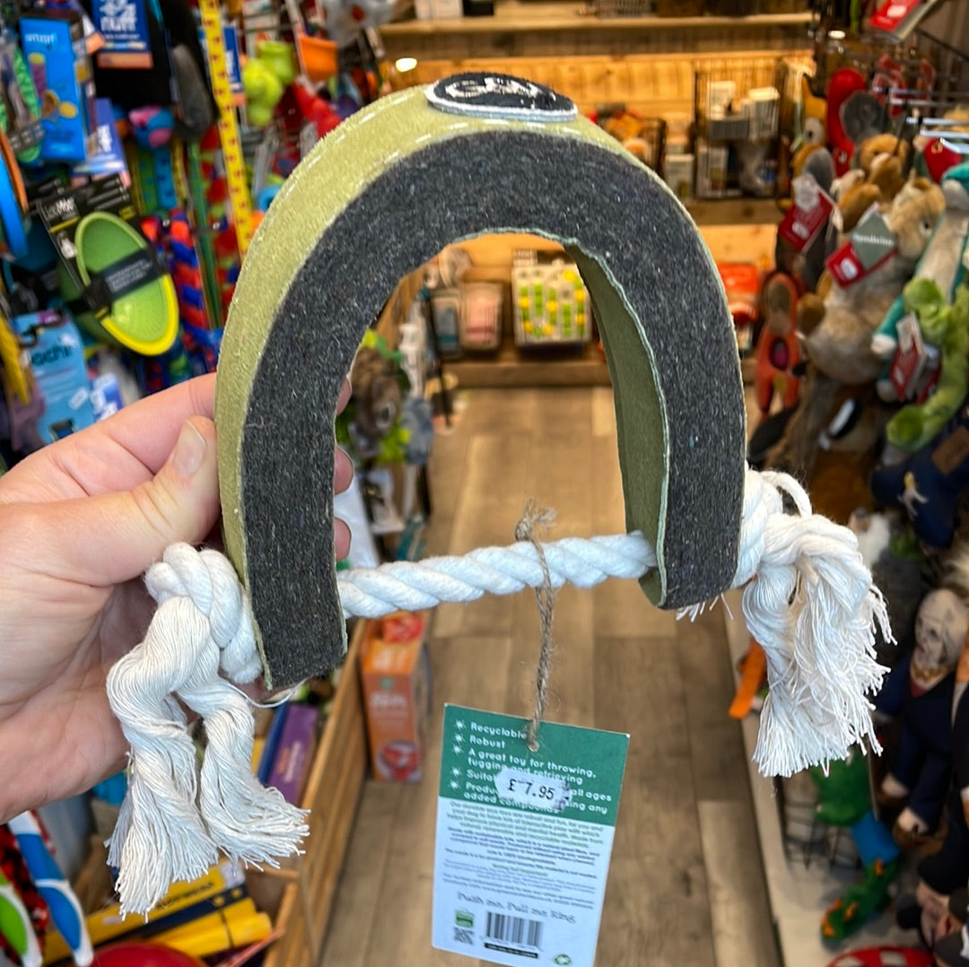 This interactive dog toy is made from natural jute and stitched over with soft suede. Perfect for a game of tug as well as fetch!