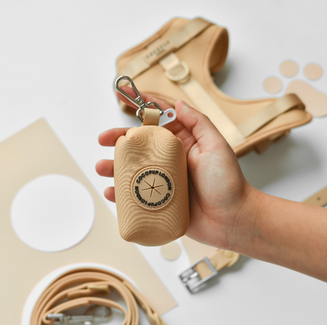 Adios Handmade Natural Cork Poo Bag Holders with 1 Roll of Compostable Poop Bags