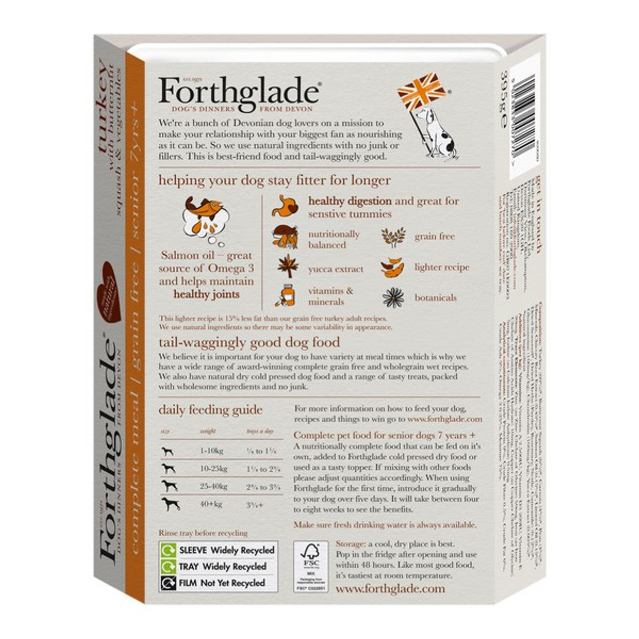 Forthglade Grain Free Turkey, Butternut Squash & Vegetables Complete Senior Wet Dog Food 395g