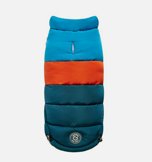 GF Pet Elasto-Fit Colour Block Puffer Dark Teal - XL is backordered and will ship as soon as it is back in stock.