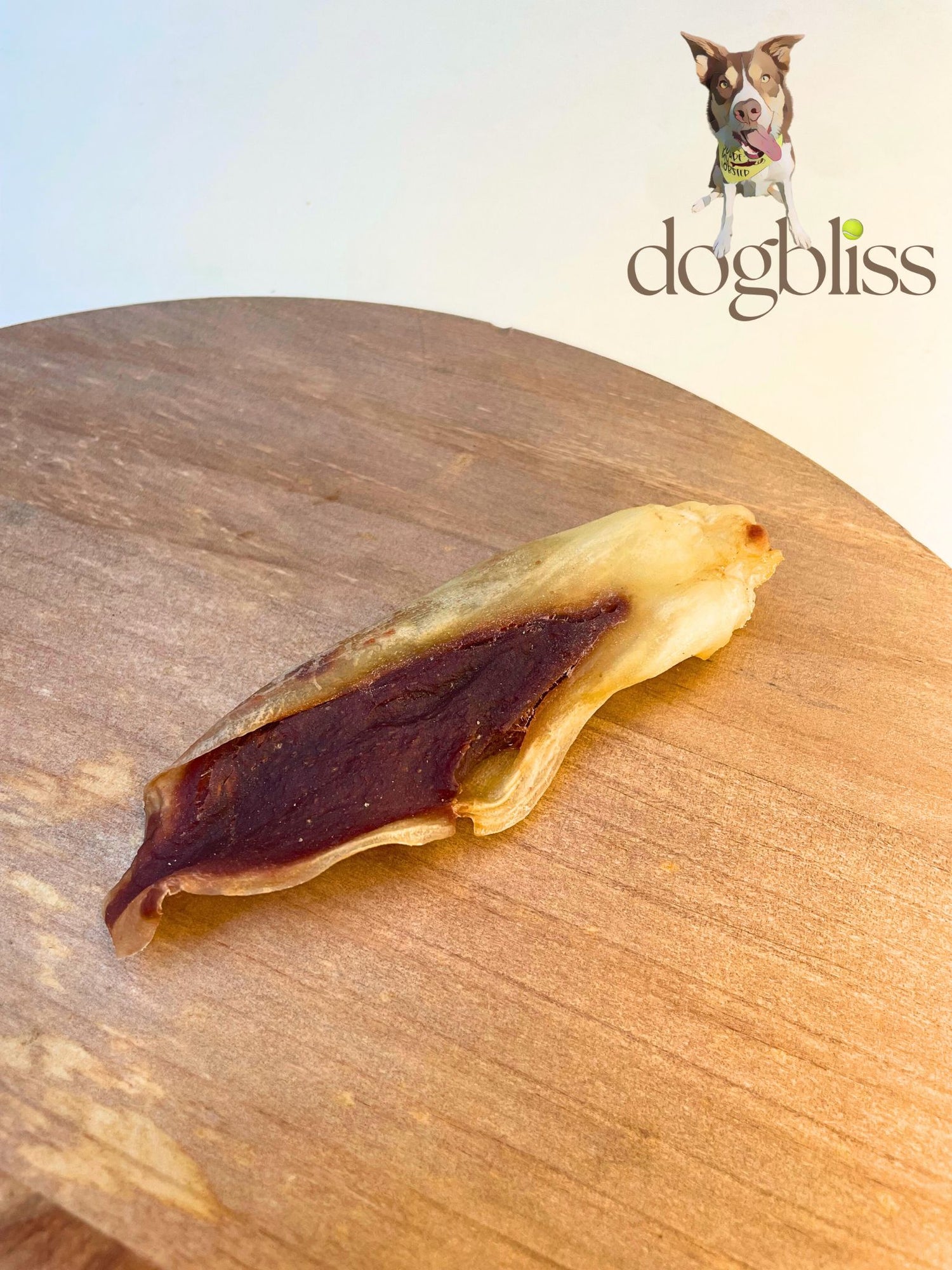 Rabbit Ear Stuffed With Lamb is a flavour-packed, protein-rich dog treat designed to satisfy chewing instincts while delivering wholesome nutrition. Combining gently air-dried rabbit ear with a delicious lamb meat filling, this treat provides texture, flavour, and a rewarding chew experience your dog will love.